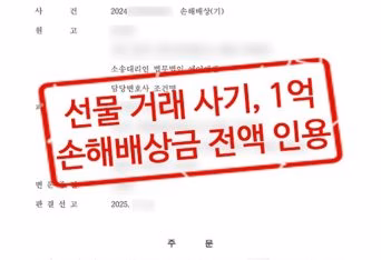 현물 옵션 선물 투자에 참여하도록 유도받은 의뢰인이 가짜 거래 플랫폼을 통해 사기를 당한 사건에서, 불법행위자와 공모자에 대한 민사 책임을 주장하여 손해배상금 1억 원 전액 인용 판결을 이끌어낸 사례.